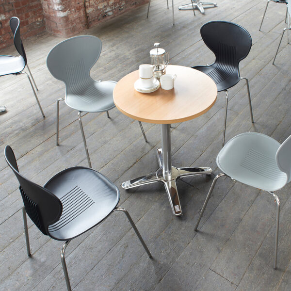 Santana 4 leg mobile chair with plastic seat and perforated back