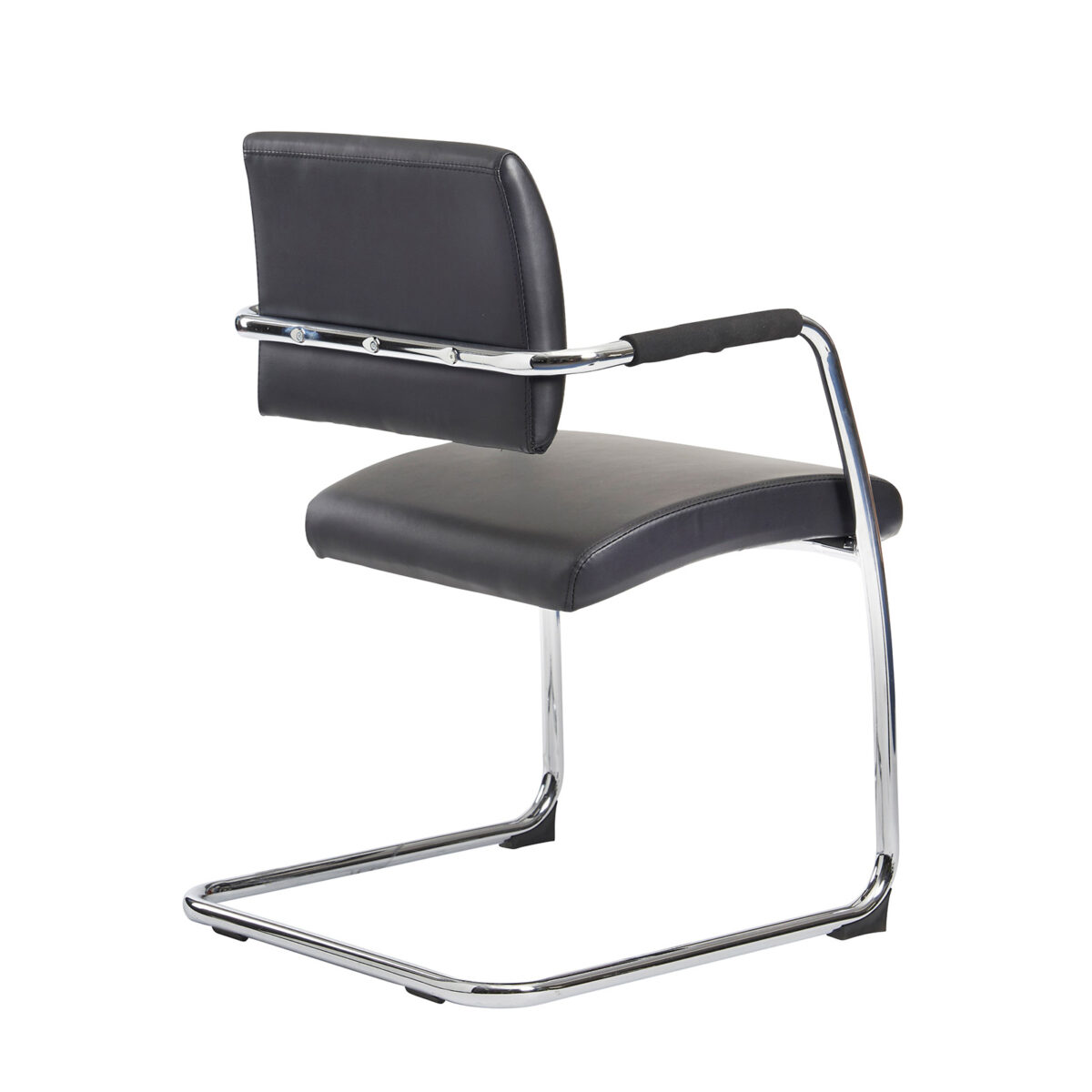 The cool, contemporary Bruges meeting chairs are durably constructed for long-term enjoyment and comfort. They have plush faux leather faced half backs and seats which are held firmly in place by a chrome cantilever support system and upholstered armrests for added comfort, so visitors and employees can relax in style