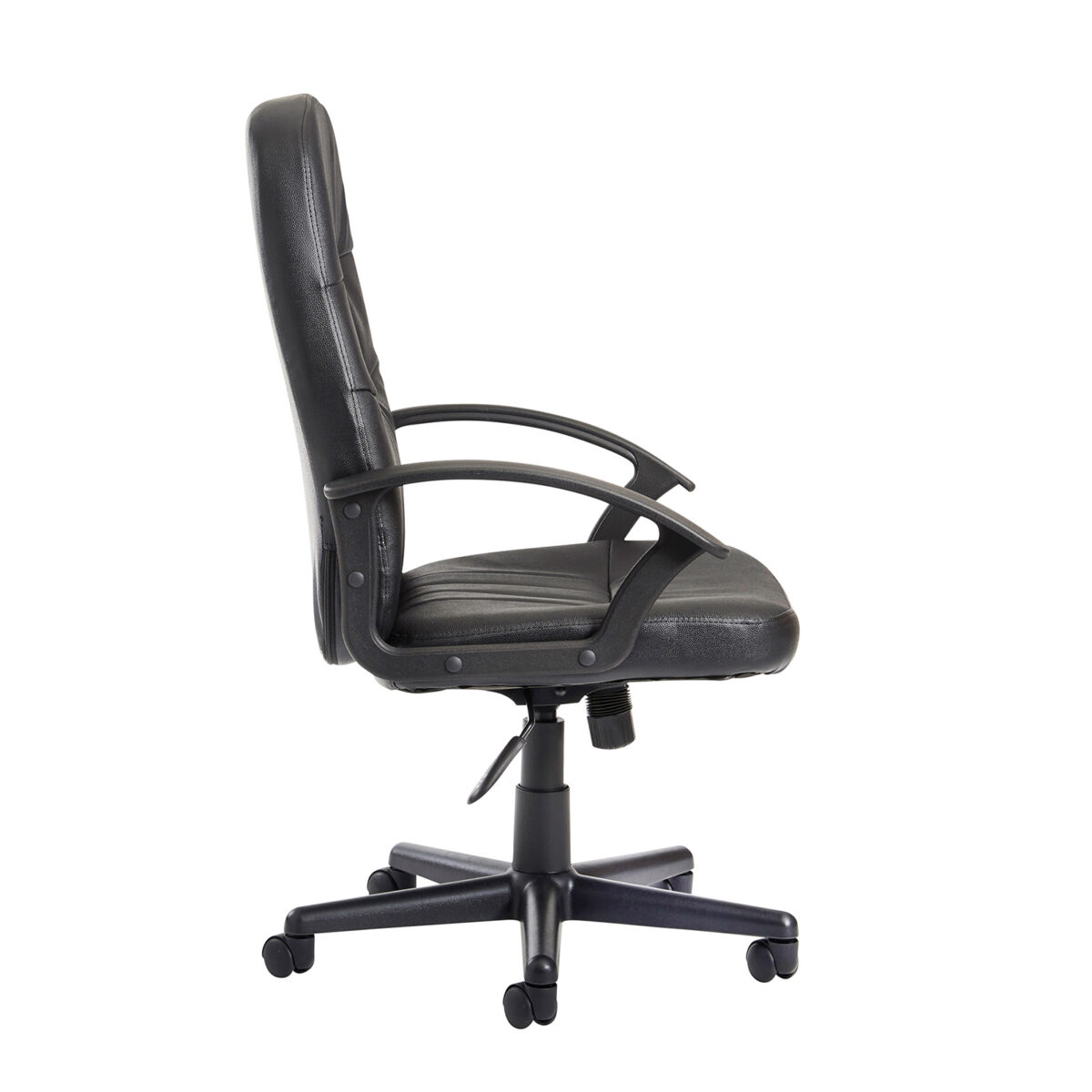 - Fixed black polyurethane armrests with durable black nylon 5 star base