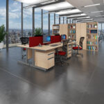 - Ergonomic left hand desktops with graphite cantilever frame and full leg return