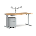 - Single straight desks 800mm deep with adjustability from 675mm to 1175mm