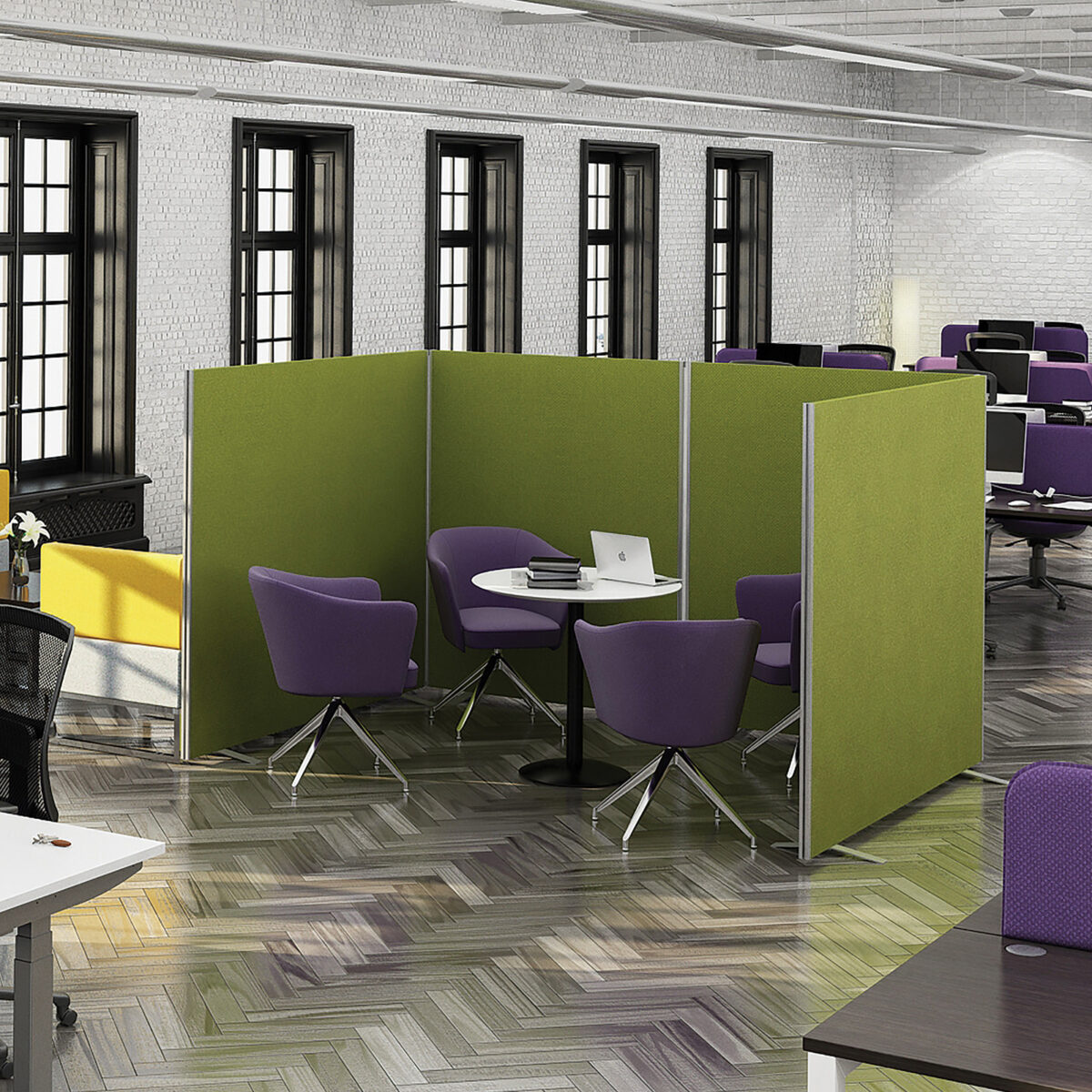Free standing floor screens are available in three different sizes and are used to break up the appearance and divide the space without losing any of the benefits of the open plan layout. Fabric wrapped floor screens also provide the operators with an element of seclusion and privacy and can be joined together with the linking strips for connecting 2 screens or 4 screens together.