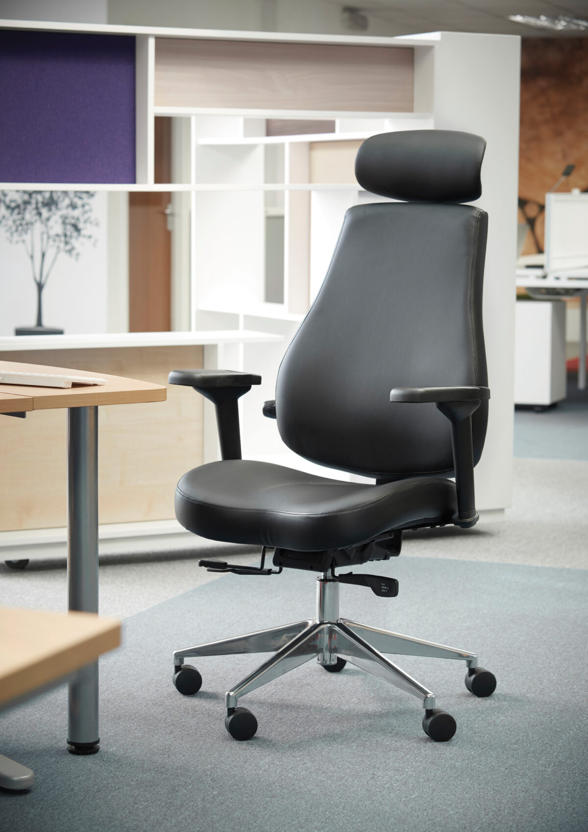 Franklin is a deluxe high back executive chair which has a professional, contemporary style whilst promoting correct posture. The waterfall edge on seat cushion alleviates the pressure on lower legs and knees while seated and the fully adjustable arms, headrest and triple paddle mechanism easily provide the comfort needed for a long day at the office.