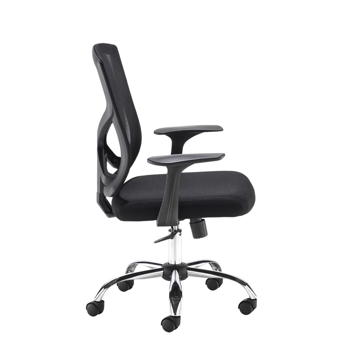 - Contemporary mesh back operator chair with black fabric seat pad