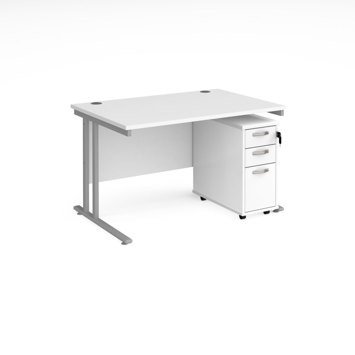 Maestro 25 cantilever 800mm deep desk with 3 drawer ped