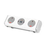 The modern clean lines and colour options of the Hubble power module compliment the modern workstation and allow the user easy access to desktop power without having to rummage in cable trays under the desk or service boxes in the floor. The clip-on moulded front and rear decorative frames with circular socket apertures create an original, distinctive and compact design perfectly matched to contemporary office furniture.