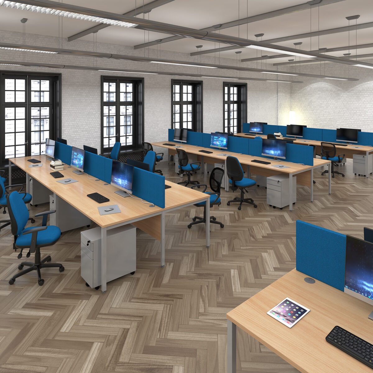 A staple for the modern office, The Maestro 25 desking range, with its minimal, modern styling and multiple colour options is there when you need it, but doesn’t demand constant attention. The Maestro 25 Bench strikes a balance between individual and group activities in the workplace with fully welded H-Frame legs in black, silver and white that are shared between desks with a modesty panel to complement the 25mm melamine desktops.