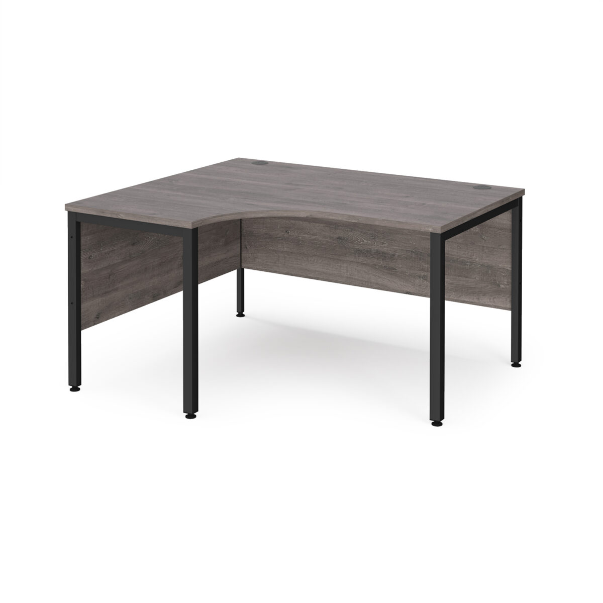 - Ergonomic left hand 1400mm desktops with full H-Frame leg return