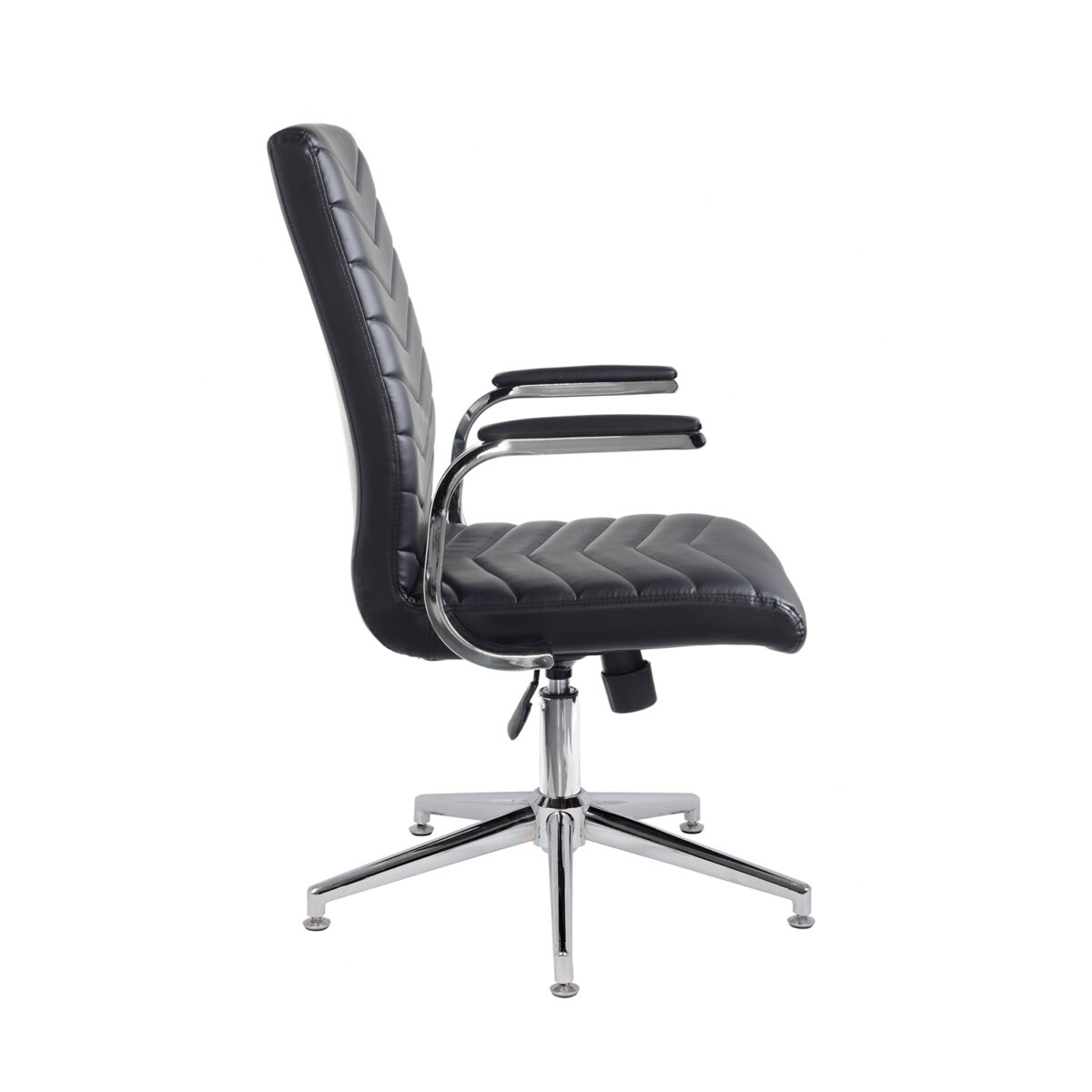 Martinez provides beautiful contemporary styling making it a trendy option for managerial and boardroom seating. Features include a diagonally patterned, curved back available in a black leather or a grey fabric and panel stitching which highlights the design, finished with chrome padded arms for a stunning looking executive chair.