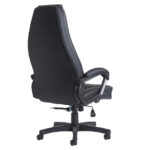 The Noble high back, black faux leather chair family is designed for comfort with a look that would fit any office or conference room. The thick padding is covered in soft and supple faux leather with a white stitching detail that looks great and offers maximum comfort and mobility for the user, with the black padded fixed arms featuring chrome trim to match the black cantilever base.