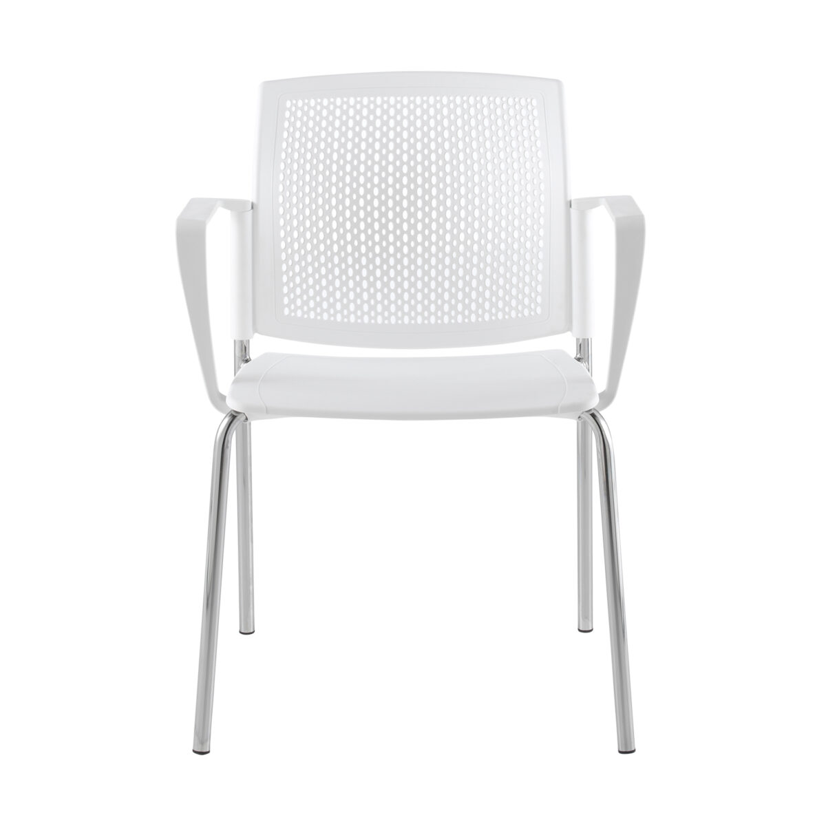 - Chrome 4 leg frame with perforated plastic back and solid plastic seat