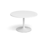 Our trumpet base tables are a modern solution for any boardroom featuring a robust, steel circular base available in silver, white or chrome that offers the ultimate in strength and durability. Curved and straight table tops are available in a choice of five colour finishes to present your company in the best possible way, whether the need calls for impromptu meetings or creative collaboration.