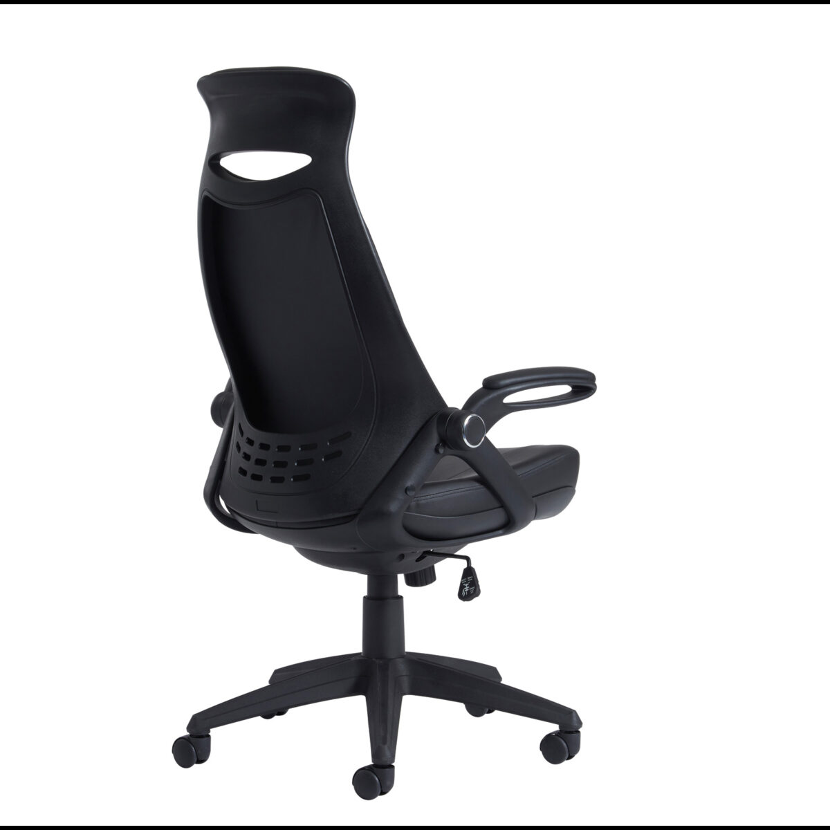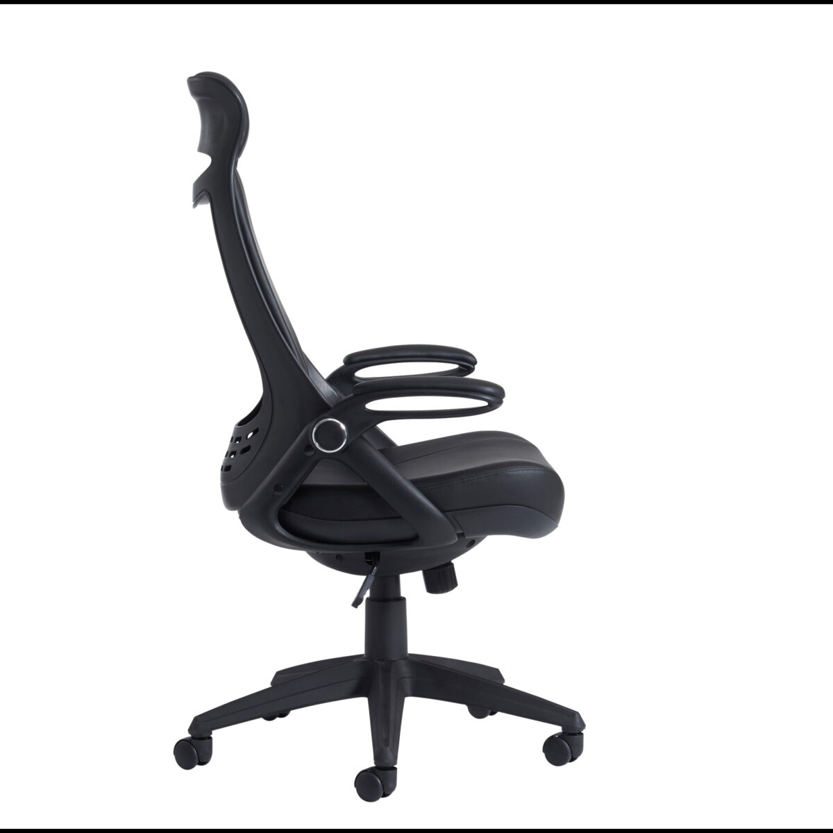 The Tuscan high back managers chair collection has a uniquely shaped back and headrest which ensures the chair adapts to the users back and provides just the right amount of comfort and support. Available in black leather, fully upholstered or with a mesh back and black fabric seat, Tuscan has ample cushioning whilst retaining a modern pillow design with sleek contours.